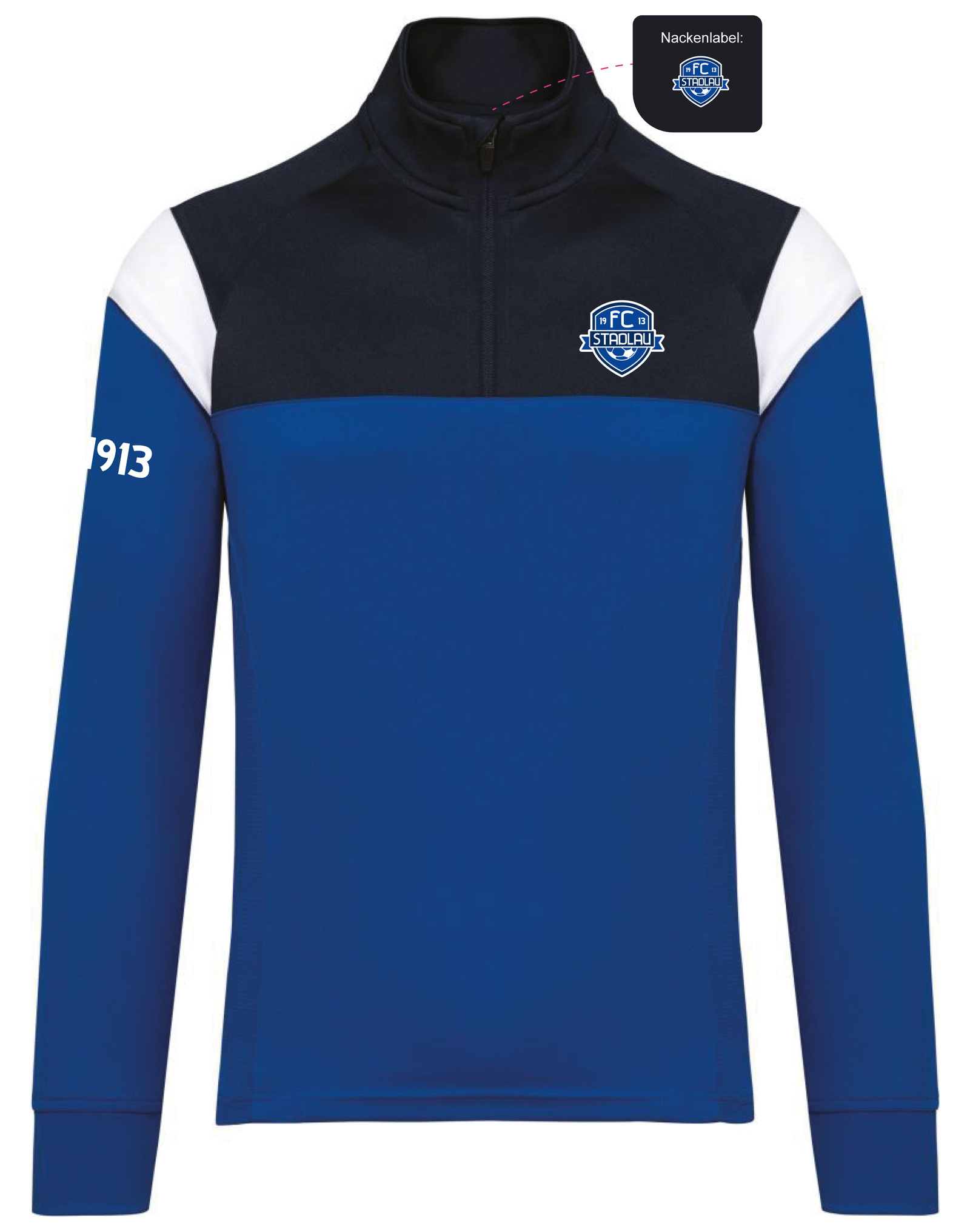 Unisex Trainings-Sweatshirt mit 1/4 Reißverschluss in royalblau/navy/weiß
