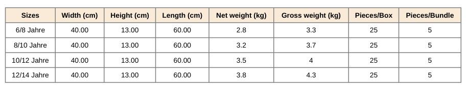 Kinder Größen