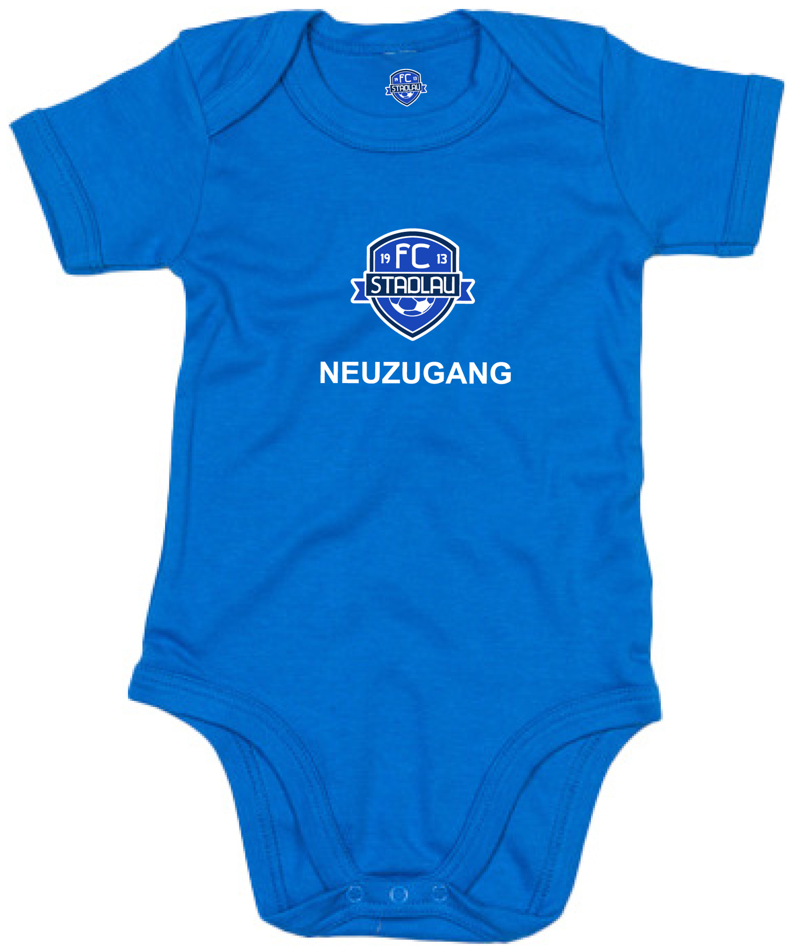 Bio Baumwolle Baby Bodysuit in blau, Druck FCS Neuzugang